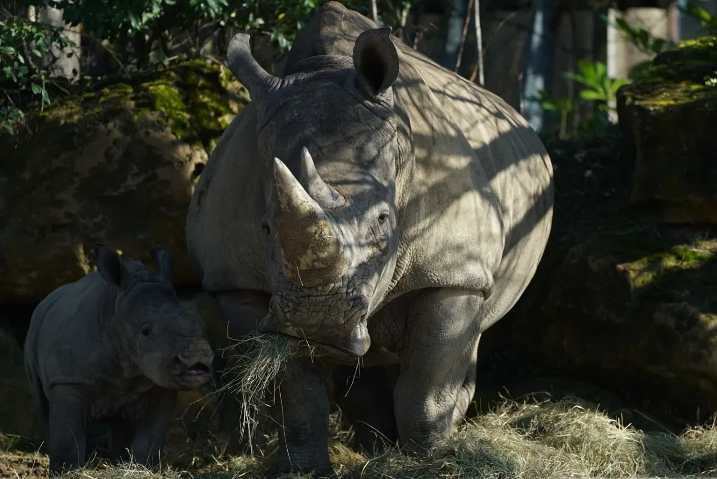 Le 18 janvier 2022, notre rhinocéros Yoruba a mis au monde une petite femelle. Nous sommes heureux de vous présenter Cera, une petite rhinocéros en pleine forme qui très collée à sa maman.